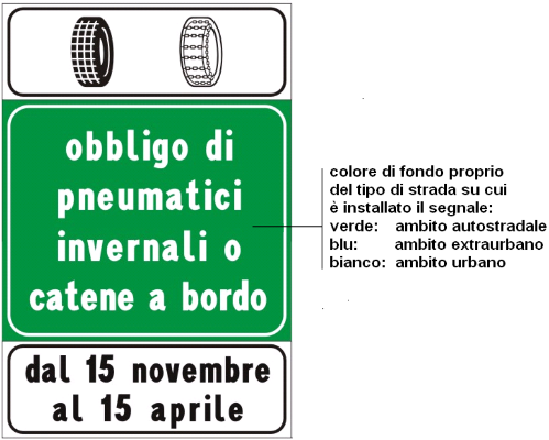 Esempio di segnale in corrispondenza dei tratti stradali in cui vige l'obbligo